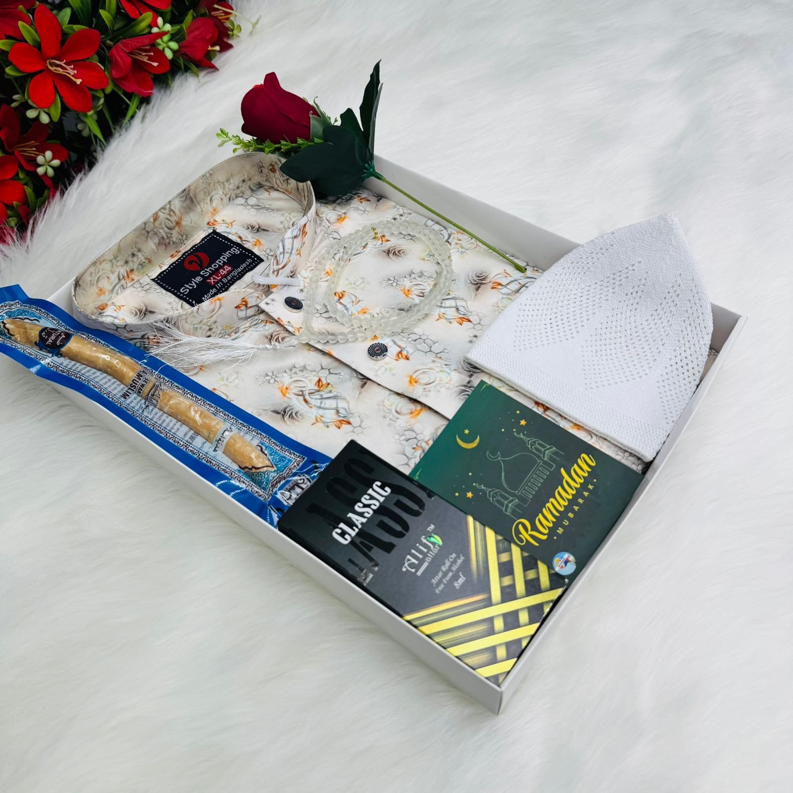 ইসলামিক পাঞ্জাবি কম্বো প্যাকেজ ১০০% কোয়ালিটি সম্পূর্ণ সাইজ:৪০/৪২/৪৪ ১/একটি ফুল ২/আলিফ এর একটি আতর ৩/একটি মেসওয়াক ৪/একটি তসবি ৫/একটি টুপি ৬/একটি গিফট কার্ড ৭/এবং একটি বক্সে পাবেন সুন্দর প্যাকেজটি