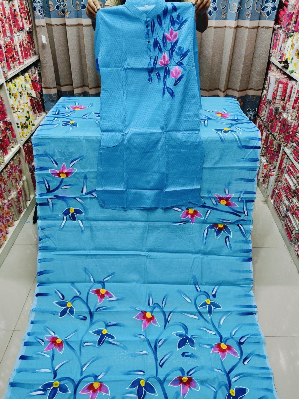 হাফ সিল্ক শাড়ি ধুপিয়ান সিল্ক পাঞ্জাবির সেরা কালেকশন  প্রোডাক্ট ডেসক্রিপশন শাড়ি : হাফ সিল্ক পাঞ্জাবি: ধুপিয়ান সিল্ক কাজ : হ্যান্ড প্রিন্ট তুলি . পাঞ্জাবি সাইজ-৪০,৪২,৪৪,৪৬ আধুনিক ও মান সম্মত ডিজাইন অরিজিনাল প্রোডাক্ট