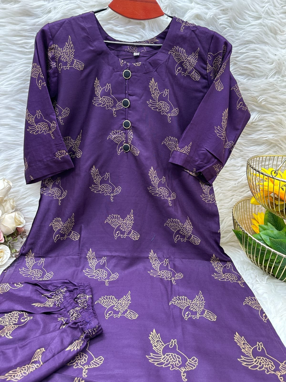 কামিজ স্টাইলের পাখি প্রিন্টের টু-পিস কালেকশন।।