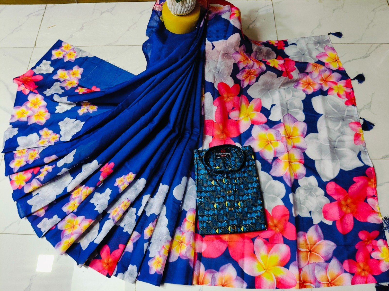 চান্দুরী ডিজিটাল প্রিন্টের শাড়ি এবং পাঞ্জাবি কাপল ড্রেস
