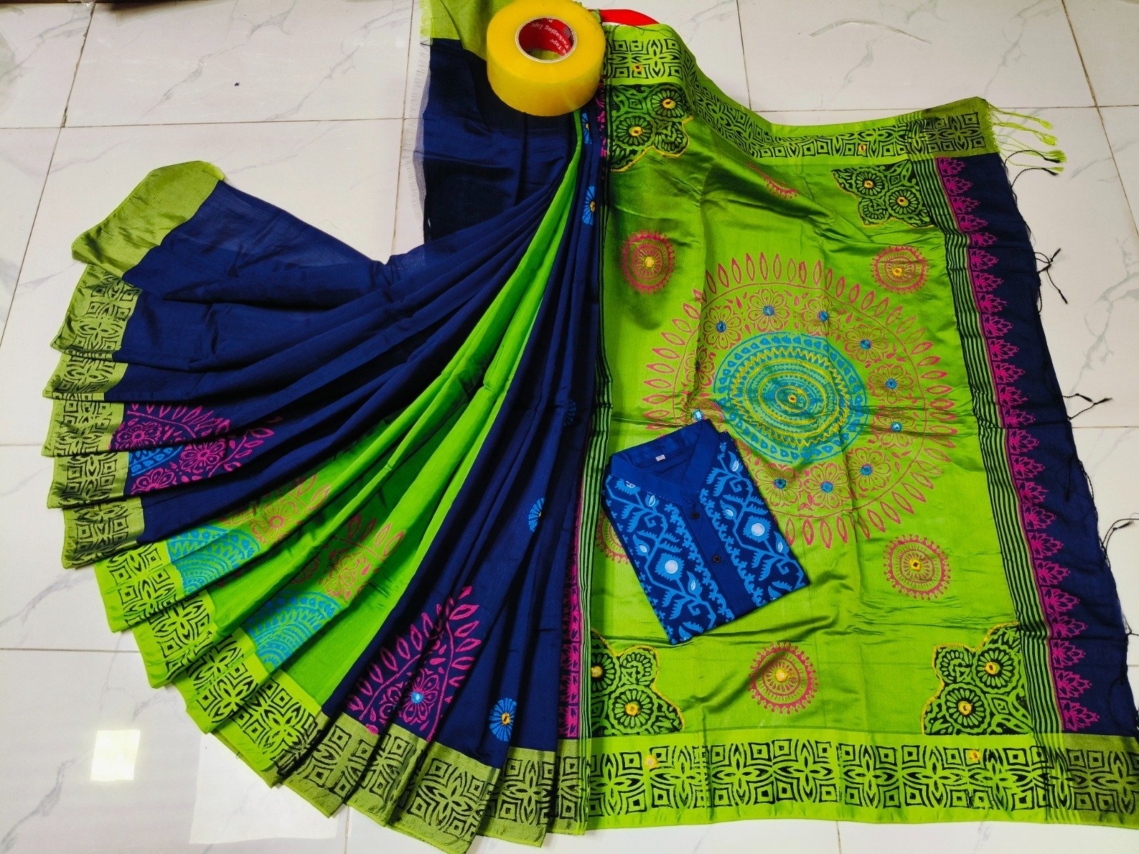 ব্লক প্রিন্ট ও এমব্রয়ডারি কাজ।