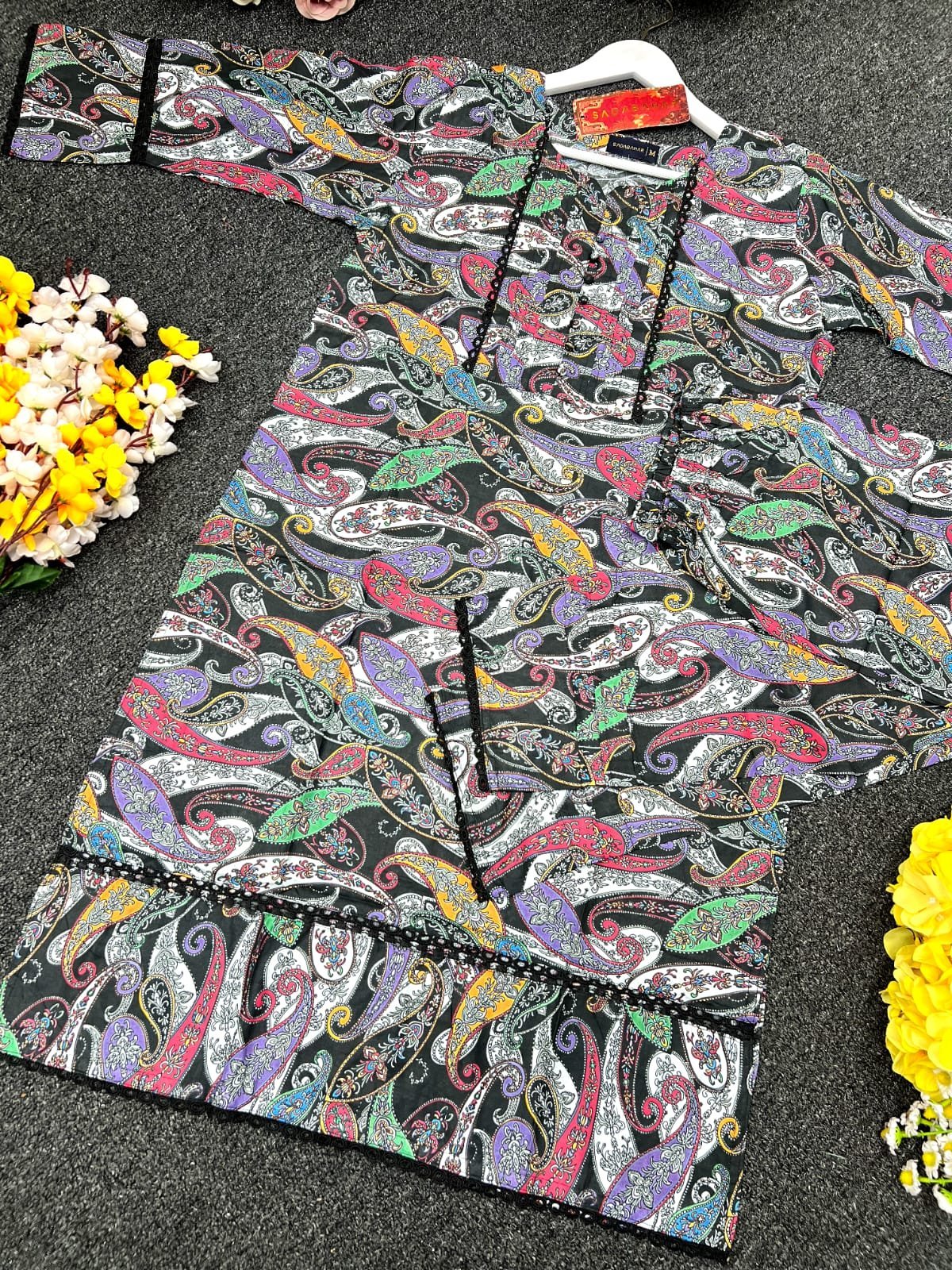 জামার বিবরণ:- সুতি কাপড়ের উপর ডিজিটাল প্রিন্ট এর কাজ করা থাকবে এবং কি লেইস এর কাজ করা থাকবে।