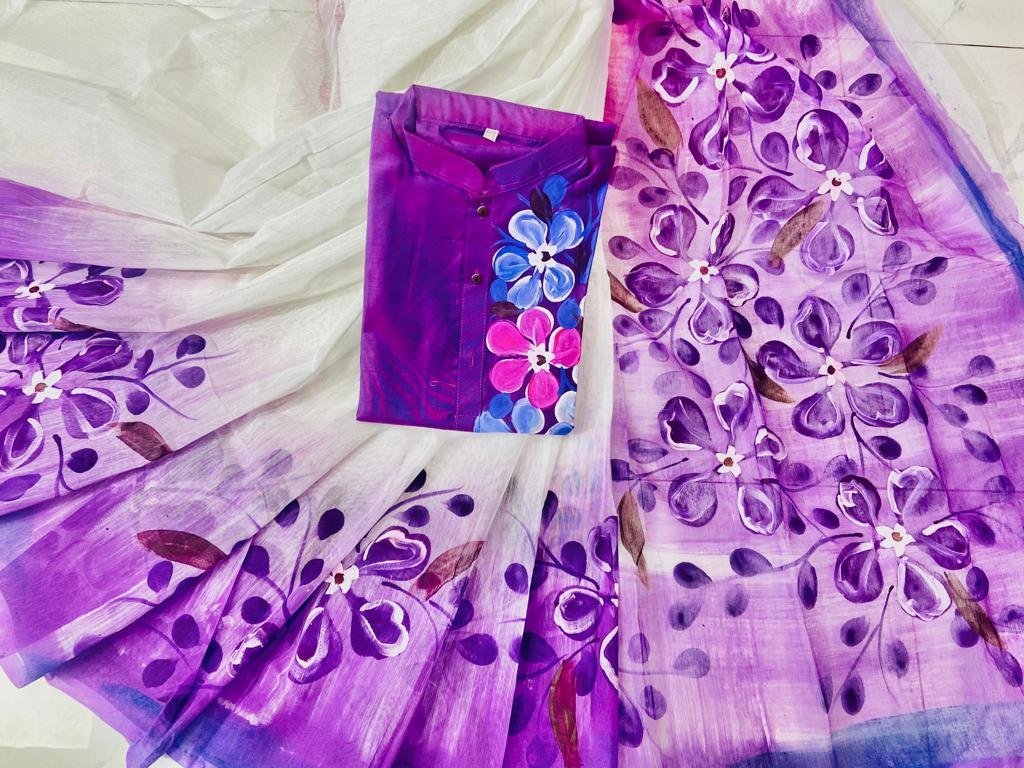 হ্যান্ড প্রিন্ট তুলির কাজ।