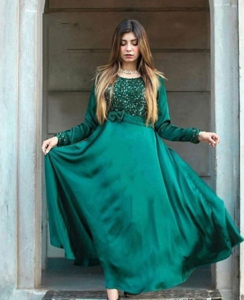 সিক্যুয়েন্স কাজ করা রেডিমেড সিল্ক কাপড়ের পার্টি গাউন (ওয়ান পিস্)