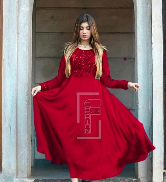 সিক্যুয়েন্স কাজ করা রেডিমেড সিল্ক কাপড়ের পার্টি গাউন (ওয়ান পিস্)