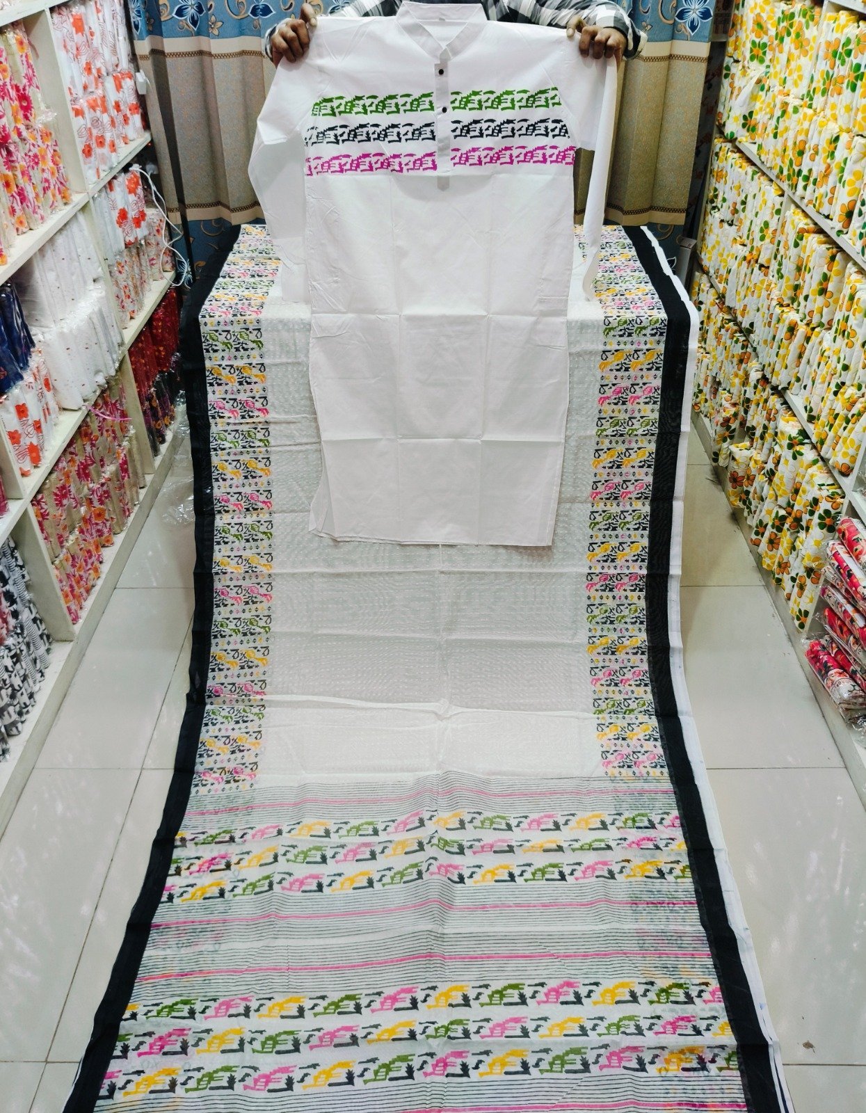Premium Quality Couple Dress  হাফ সিল্ক শাড়িতে স্কিন প্রিন্ট কাজ করা ও   ধুপিন্যান সিল্ক পাঞ্জাবিতে ব্লক প্রিন্ট কাজ করা | প্রোডাক্ট টাইপ:- হাফ সিল্ক শাড়ি। ধুপিয়ান সিল্ক পাঞ্জাবি। শাড়ির লং ১২ হাত। স্কিন প্রিন্ট ও ব্লক প্রিন্টের কাজ করা।  পাঞ্জাবি সাইজ-৪০,৪২,৪৪,৪৬ আধুনিক ও মান সম্মত ডিজাইন। অরিজিনাল প্রোডাক্ট।