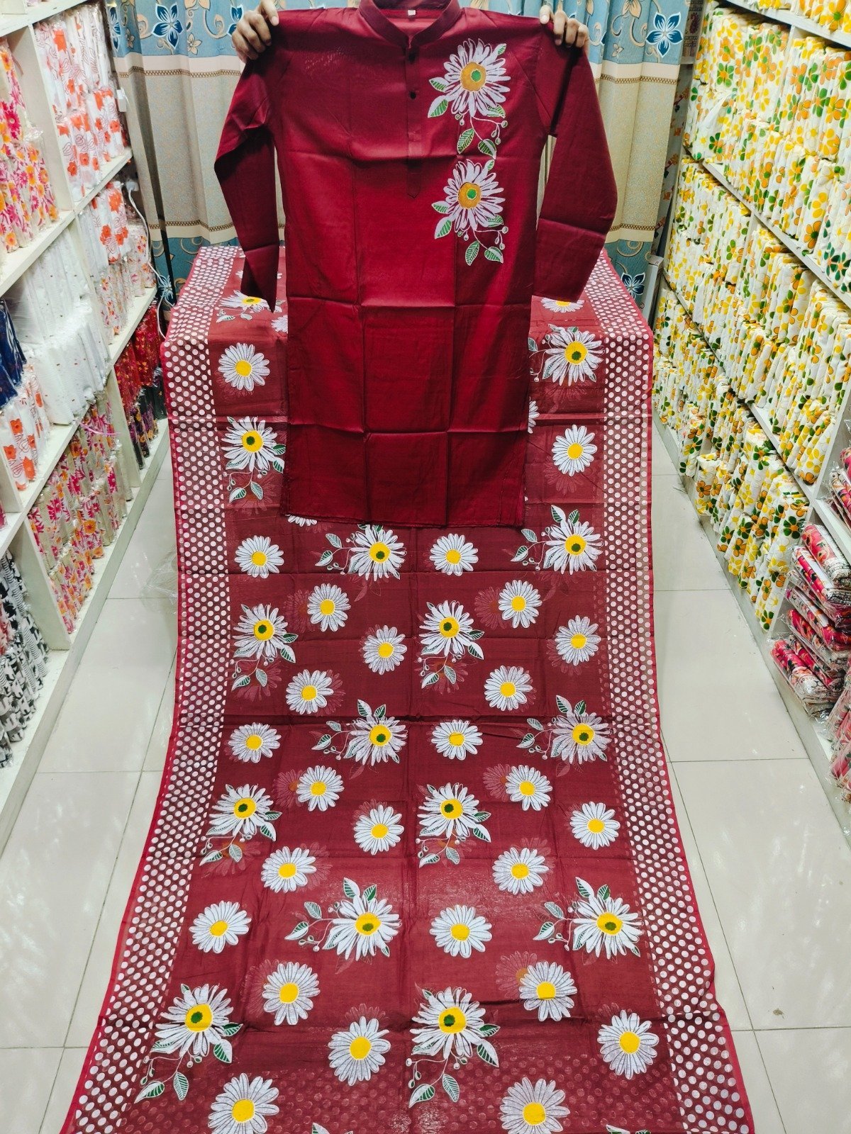 ধুপিন্যান সিল্ক পাঞ্জাবিতে ব্লক প্রিন্ট কাজ করা |