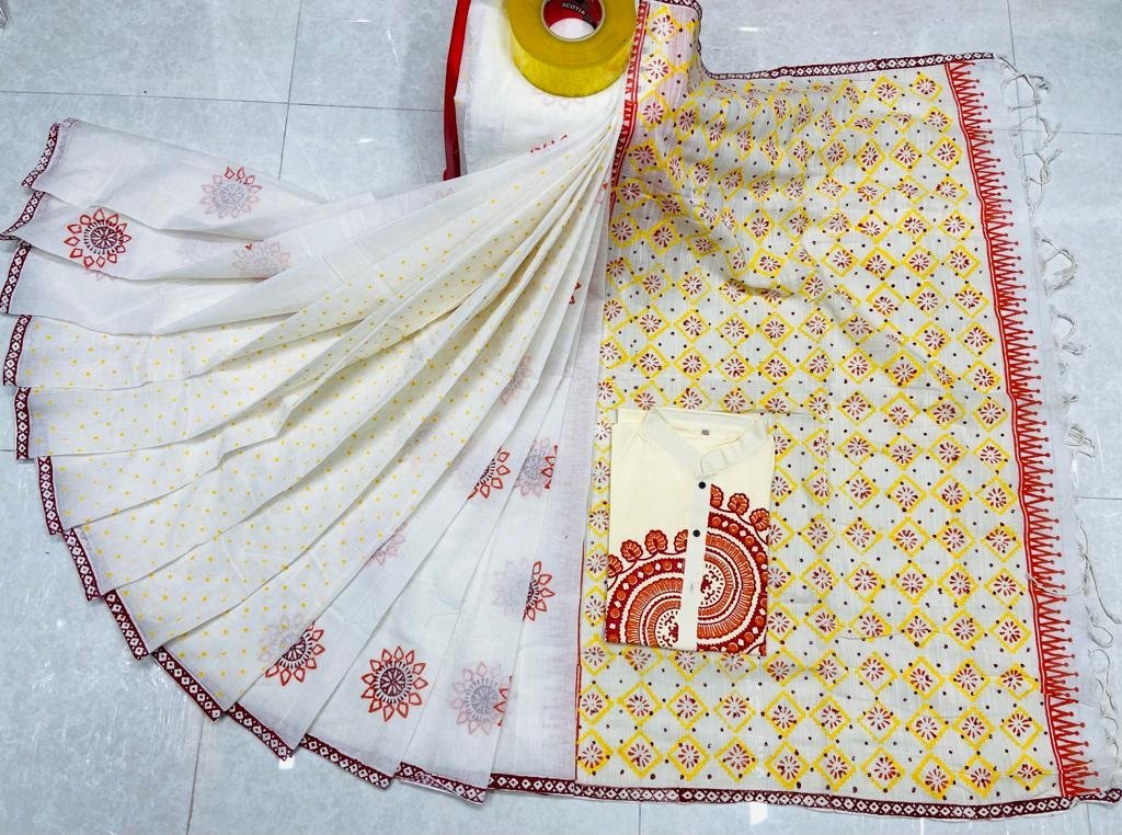 শাড়ি: সুতি শাড়ী।